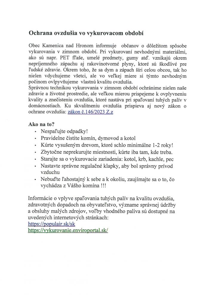 Ochrana ovzdušia vo vykurovacom období 3. novembra 2025 v Oznámenie https://populair.sk/sk https://vykurovanie.enviroportal.sk